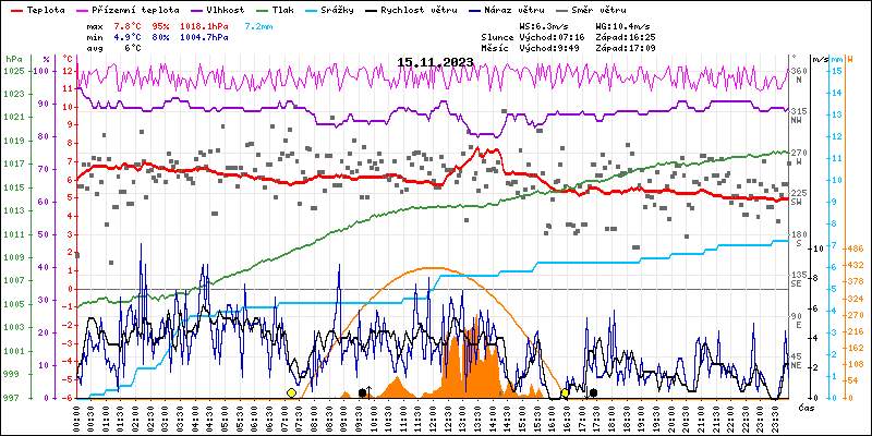 Meteostanice Volary, údaje z 15.11.2023