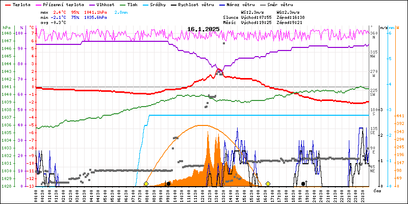 Meteostanice Volary, údaje z 16.01.2025
