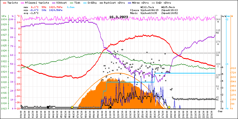 Meteostanice Volary, údaje z 16.03.2023