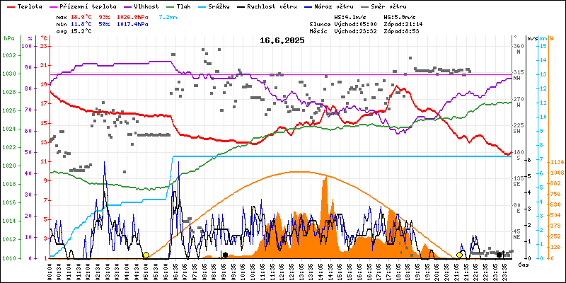 Meteostanice Volary, údaje z 16.06.2025