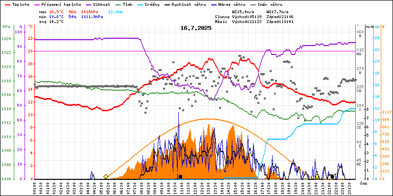 Meteostanice Volary, údaje z 16.07.2025