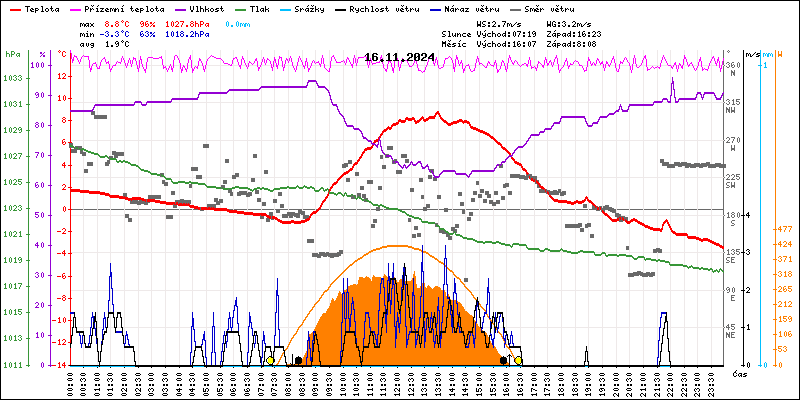 Meteostanice Volary, údaje z 16.11.2024