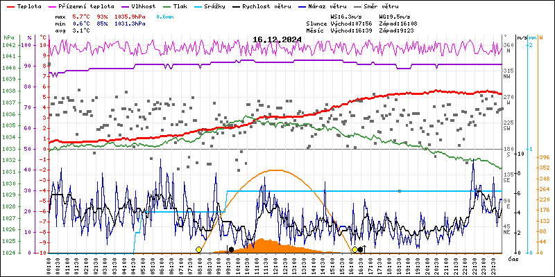 Meteostanice Volary, údaje z 16.12.2024
