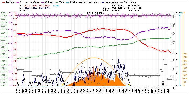 Meteostanice Volary, údaje z 18.02.2025