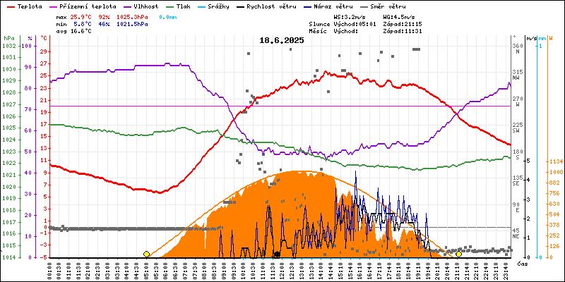 Meteostanice Volary, údaje z 18.06.2025