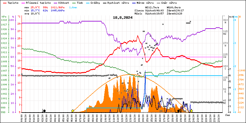 Průměrná teplota:17.7°C (tepl. v 8 + 15 + 2 x 22 h)