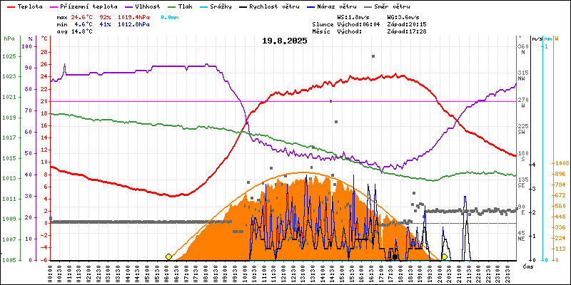 Meteostanice Volary, údaje z 19.08.2025