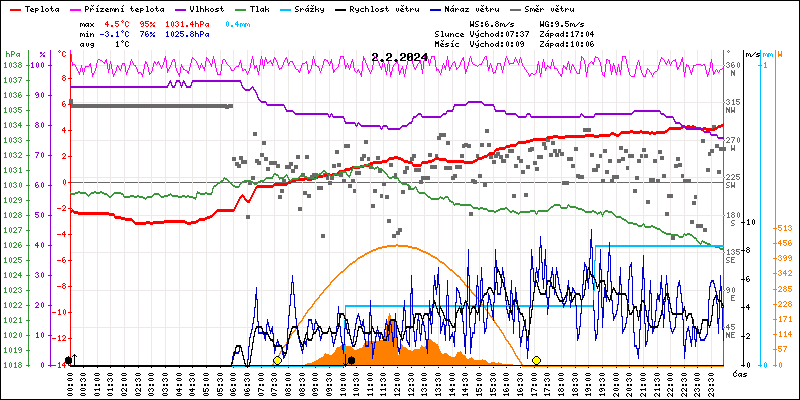 Meteostanice Volary, údaje z 02.02.2024