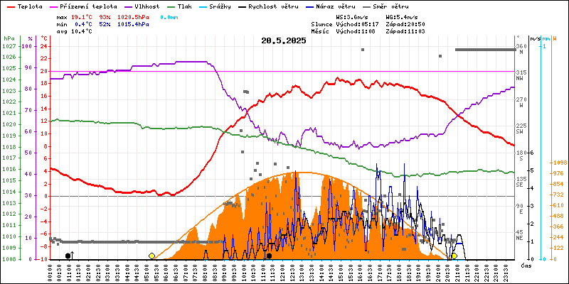 Průměrná teplota:11.5°C (tepl. v 8 + 15 + 2 x 22 h)
