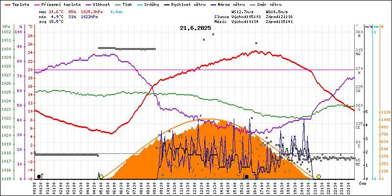 Průměrná teplota:16.1°C (tepl. v 8 + 15 + 2 x 22 h)