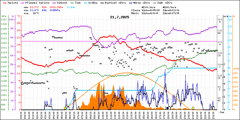 Průměrná teplota:15.4°C (tepl. v 8 + 15 + 2 x 22 h)