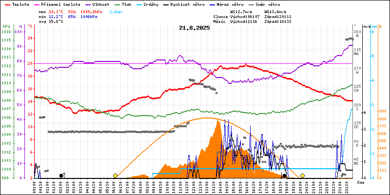 Meteostanice Volary, údaje z 21.08.2025