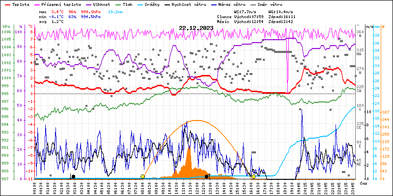 Meteostanice Volary, údaje z 22.12.2023