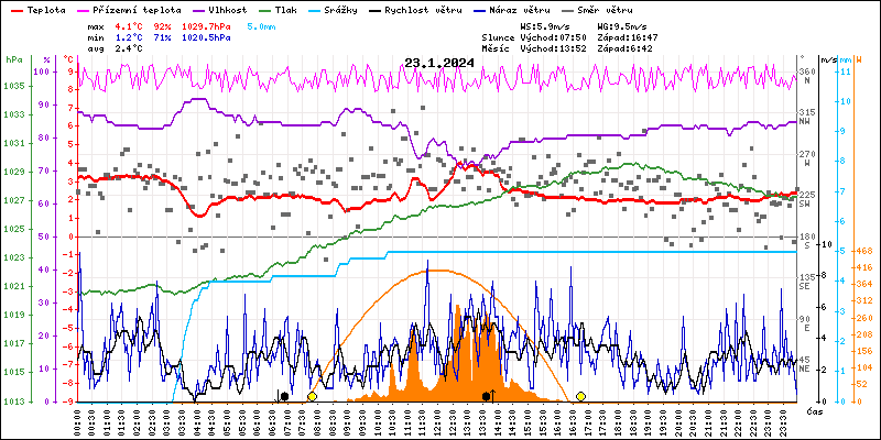 Meteostanice Volary, údaje z 23.01.2024