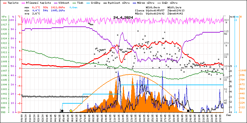 Průměrná teplota:1.9°C (tepl. v 8 + 15 + 2 x 22 h)