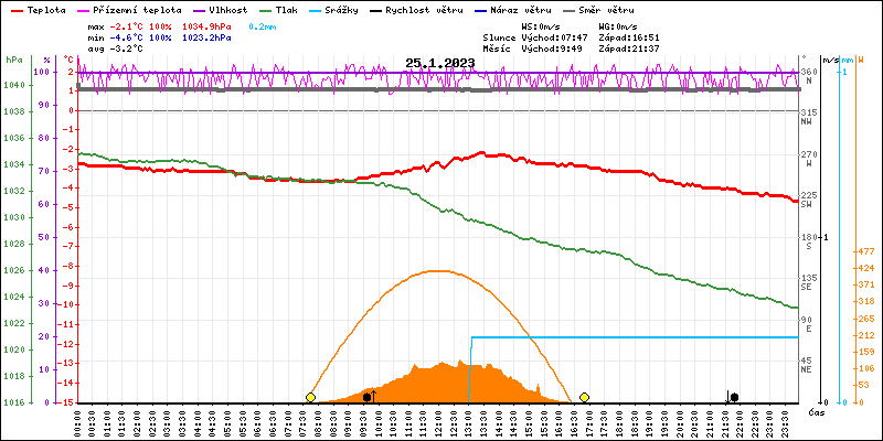 Meteostanice Volary, údaje z 25.01.2023