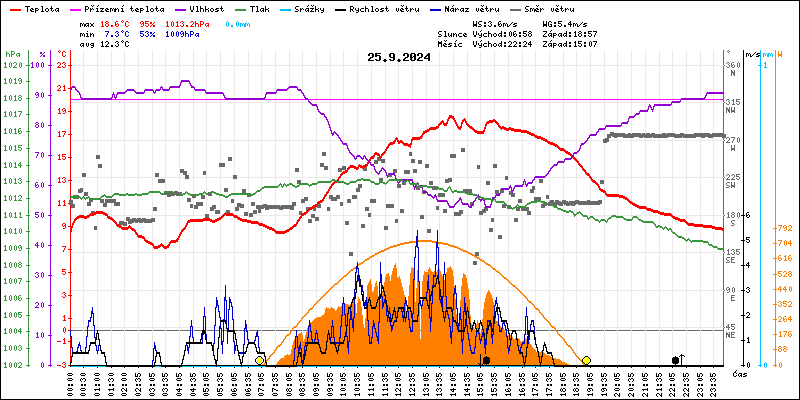 Průměrná teplota:11.5°C (tepl. v 8 + 15 + 2 x 22 h)