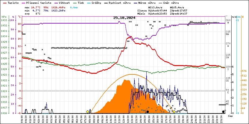 Meteostanice Volary, údaje z 25.10.2024