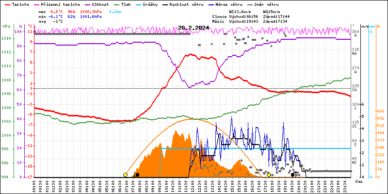 Meteostanice Volary, údaje z 26.02.2024