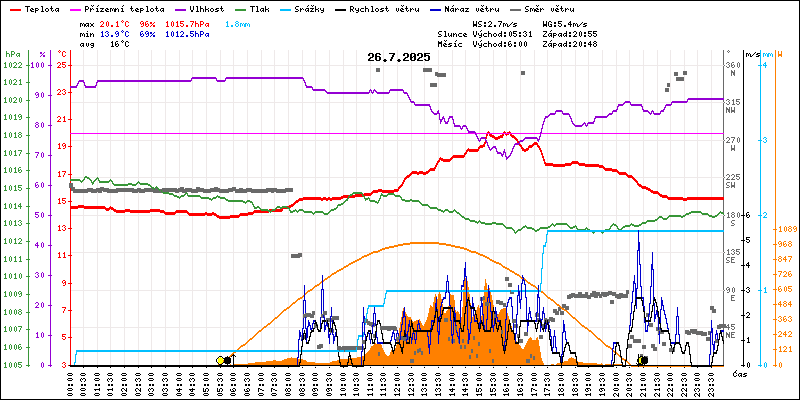 Meteostanice Volary, údaje z 26.07.2025