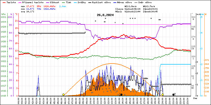 Průměrná teplota:14.1°C (tepl. v 8 + 15 + 2 x 22 h)