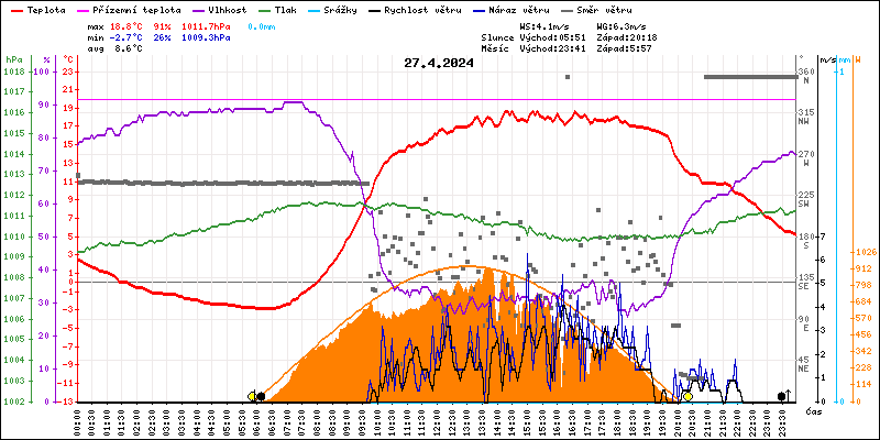 Průměrná teplota:9.4°C (tepl. v 8 + 15 + 2 x 22 h)
