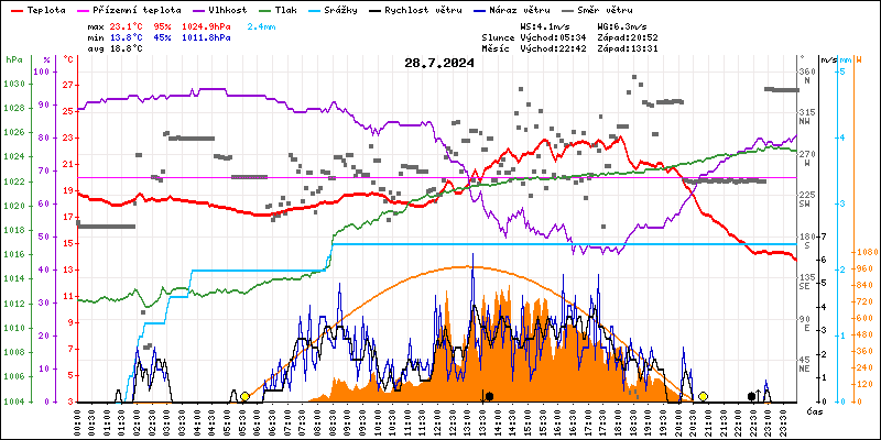 Průměrná teplota:17.7°C (tepl. v 8 + 15 + 2 x 22 h)