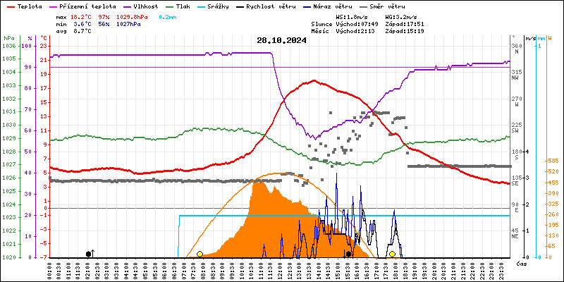 Maximální teplota:18.2°C v 13:40