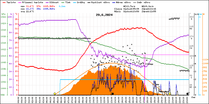 Průměrná teplota:23.3°C (tepl. v 8 + 15 + 2 x 22 h)