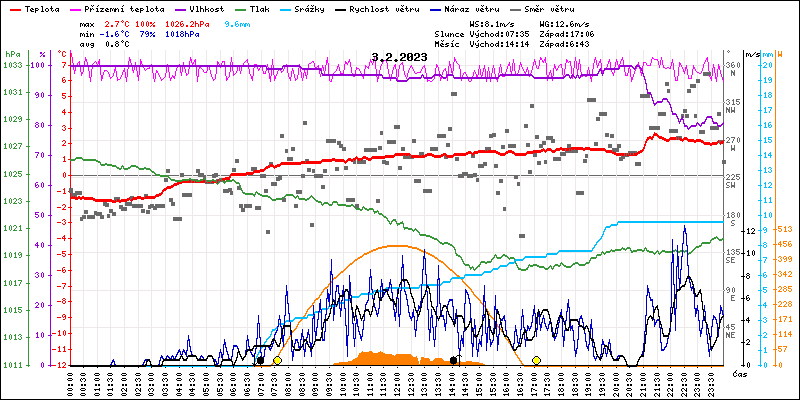 Průměrná teplota:1.3°C (tepl. v 7 + 14 + 2 x 21 h)