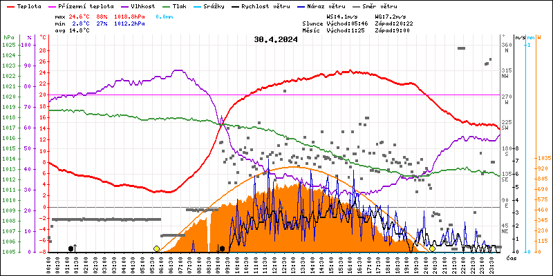 Maximální teplota:24.6°C v 16:00