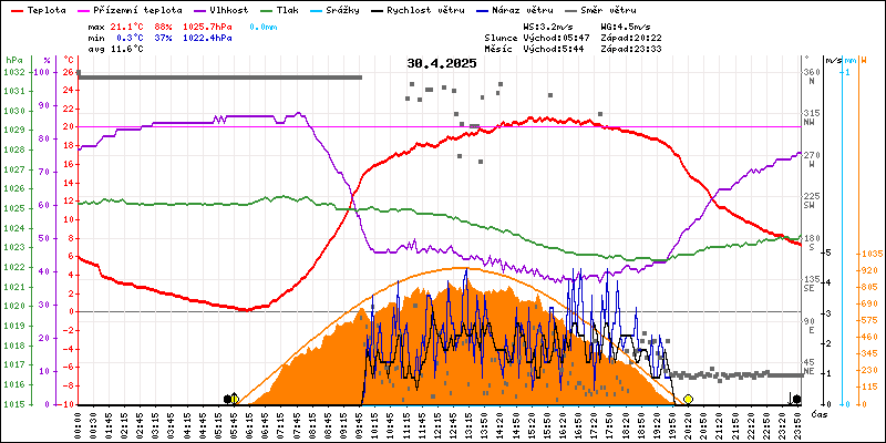 Průměrná teplota:11.3°C (tepl. v 8 + 15 + 2 x 22 h)