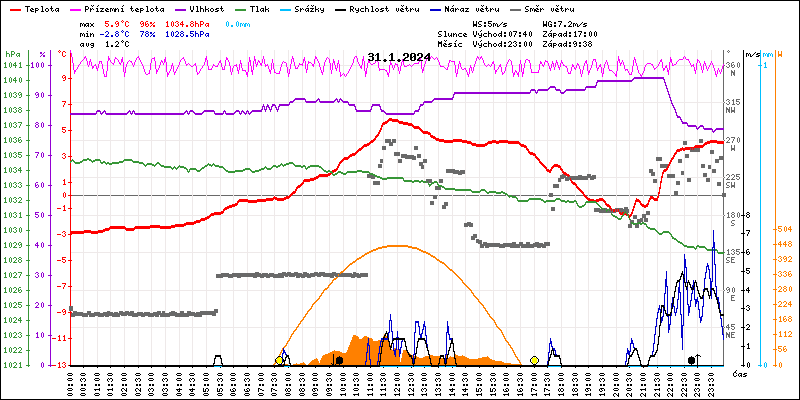 Meteostanice Volary, údaje z 31.01.2024