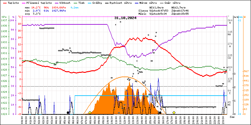 Meteostanice Volary, údaje z 31.10.2024