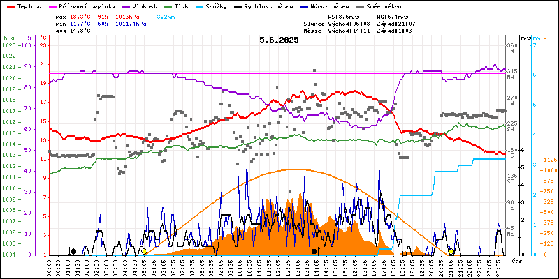 Průměrná teplota:14.5°C (tepl. v 8 + 15 + 2 x 22 h)