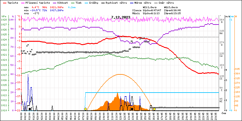 Meteostanice Volary, údaje z 07.12.2023
