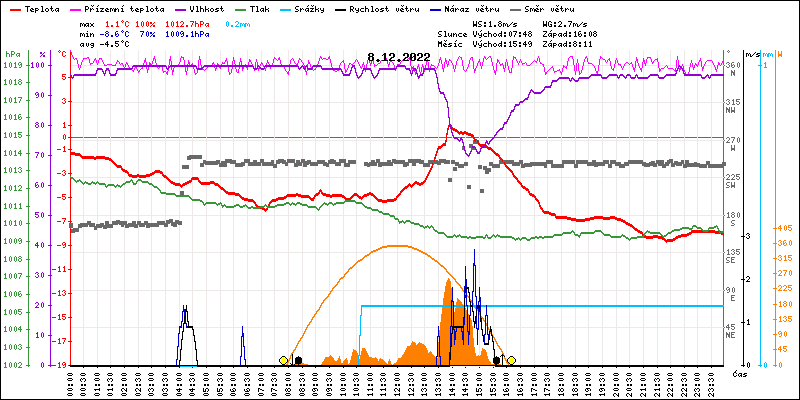 Meteostanice Volary, údaje z 08.12.2022