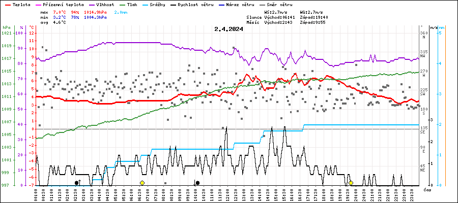 | Maximální teplota: | 7.0°C | v 16:15 |
