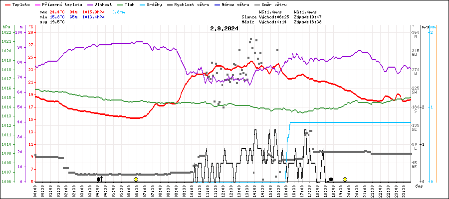 | Maximální teplota: | 24.4°C | v 13:45 |