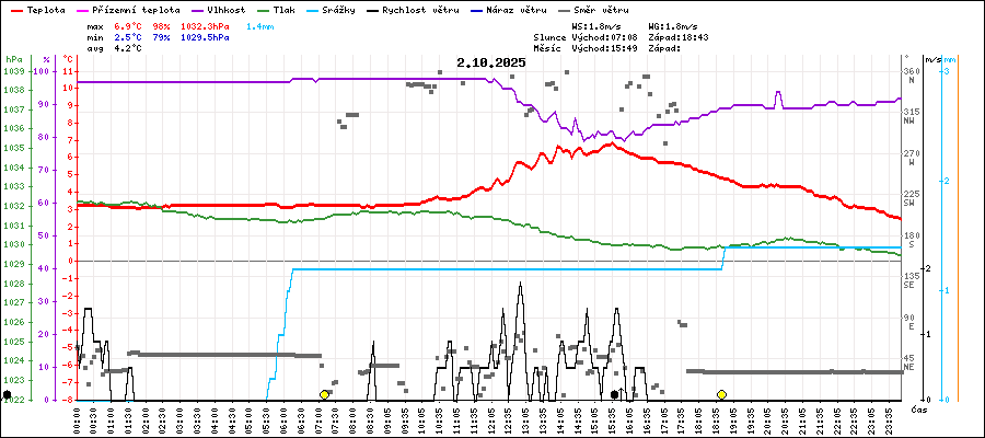 | Maximální teplota: | 6.9°C | v 15:35 |