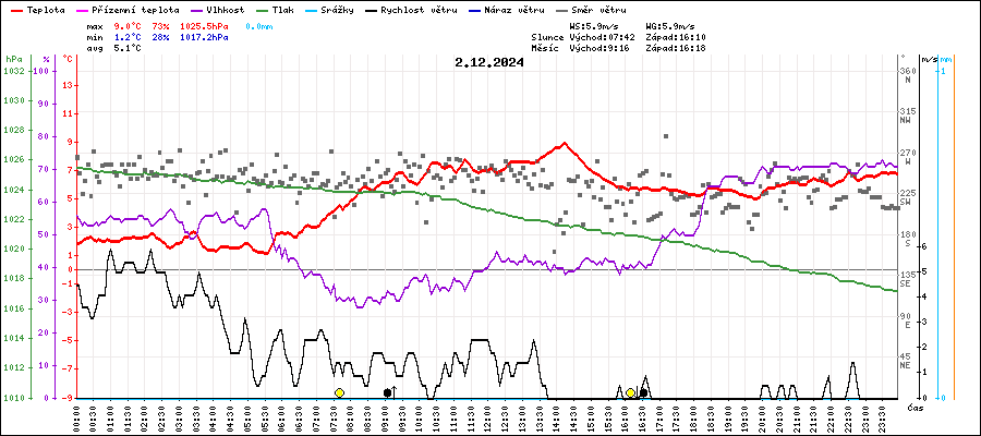 | Minimální teplota: | 1.2°C | v 05:30 |