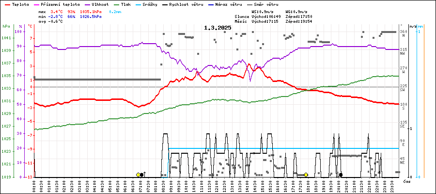 | Maximální teplota: | 3.4°C | v 14:05 |
