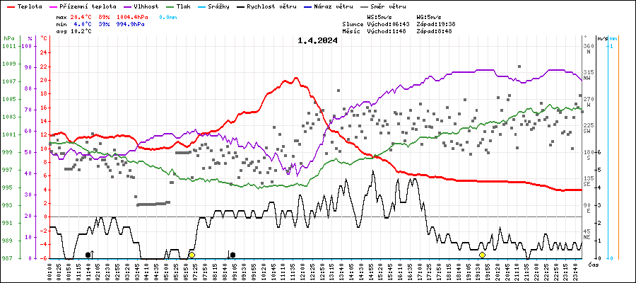 Průměrná teplota:7.7°C (tepl. v 8 + 15 + 2 x 22 h)