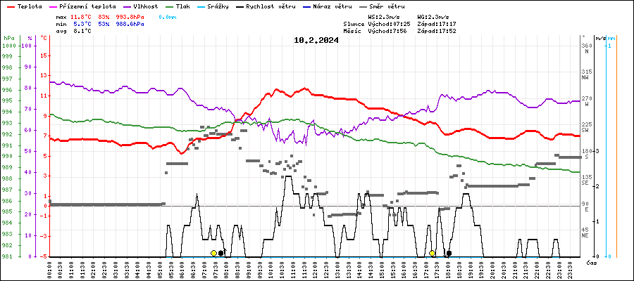 | Maximální teplota: | 11.8°C | v 11:30 |
