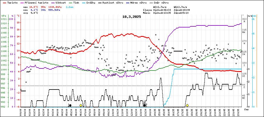 | Maximální teplota: | 14.9°C | v 09:45 |