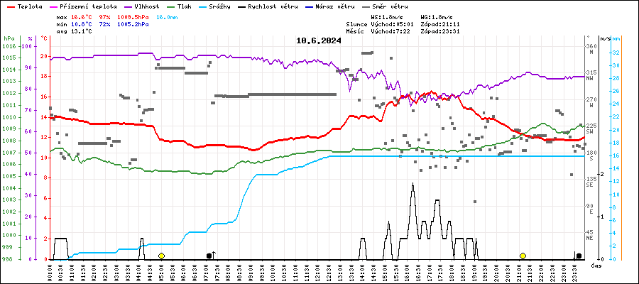 | Maximální teplota: | 16.6°C | v 17:05 |