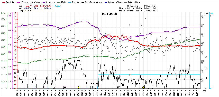 | Průměrná teplota: | -4.2°C | (tepl. v 7 + 14 + 2 x 21 h) |
