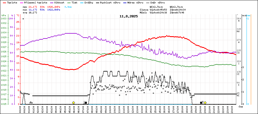 | Minimální teplota: | 11.1°C | v 05:20 |
