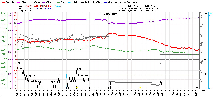 | Maximální teplota: | 7.3°C | v 12:10 |
