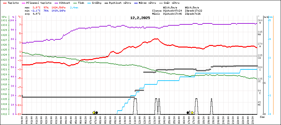 | Minimální teplota: | -2.1°C | v 04:45 |